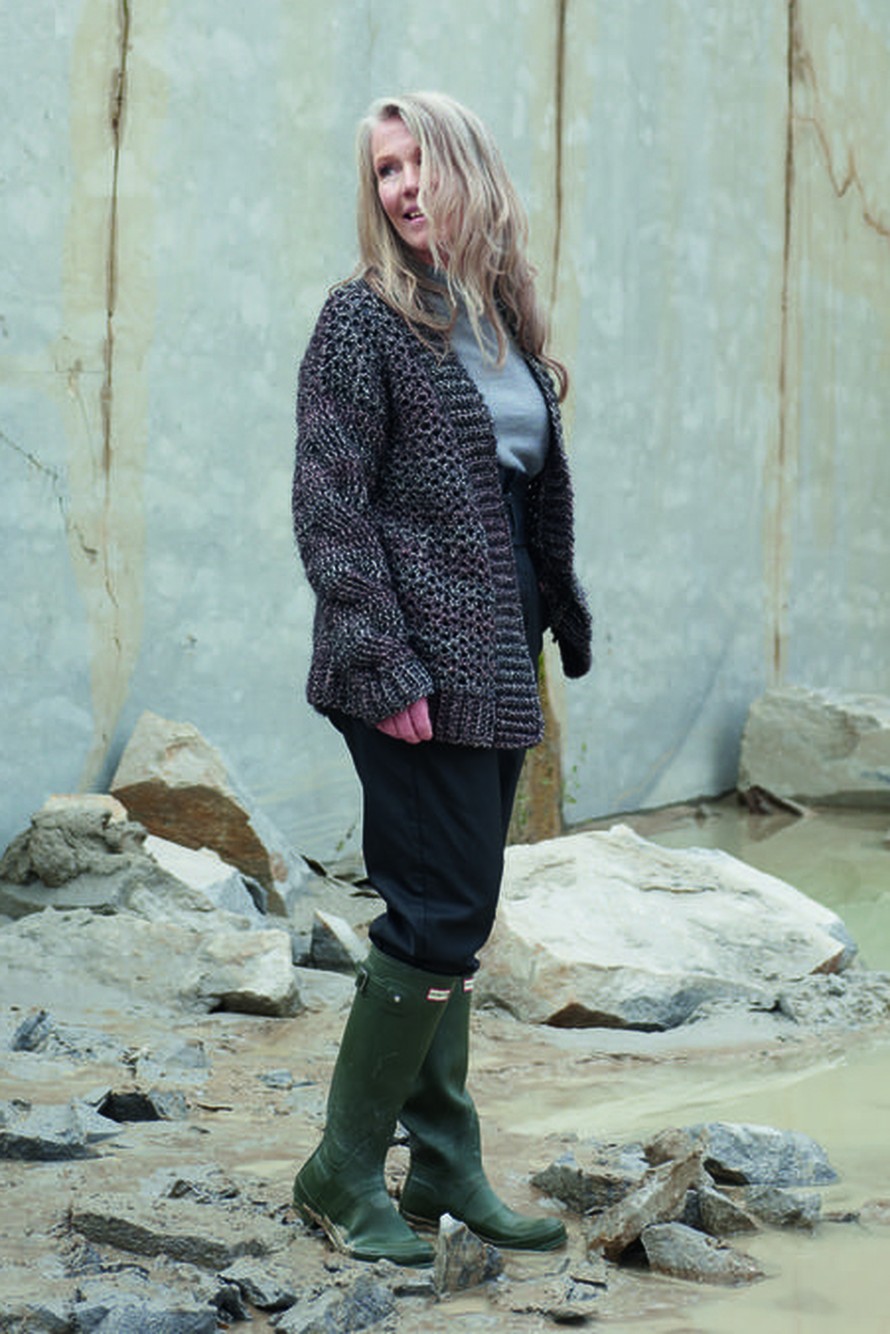 Virkattu villatakki.