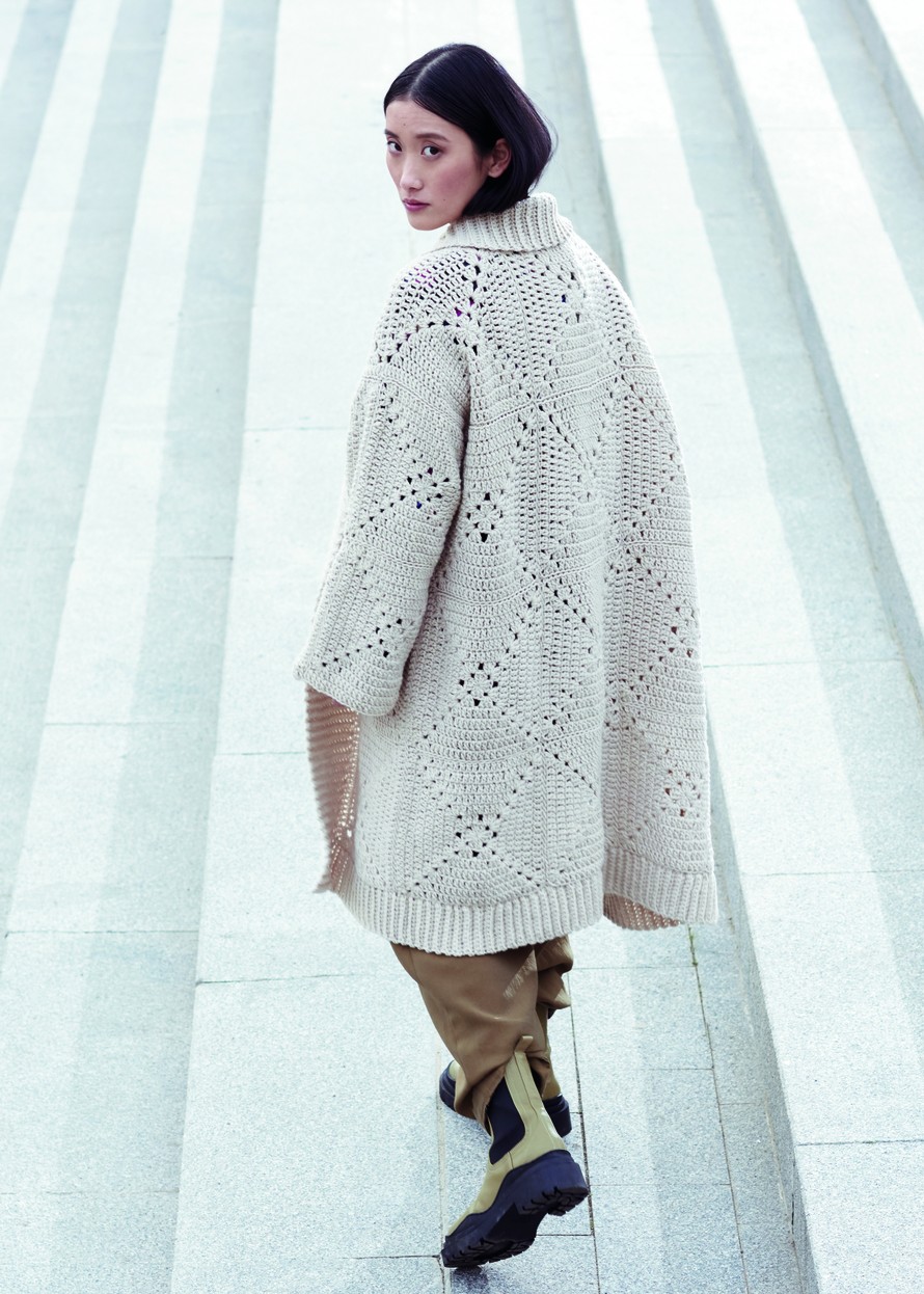 Isoäidin tyylin virkattu takki.