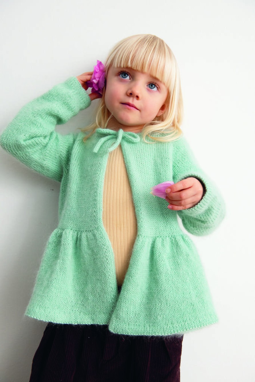 Herttainen, röyhelöhelmainen takki lapselle, koot 2-12 v.