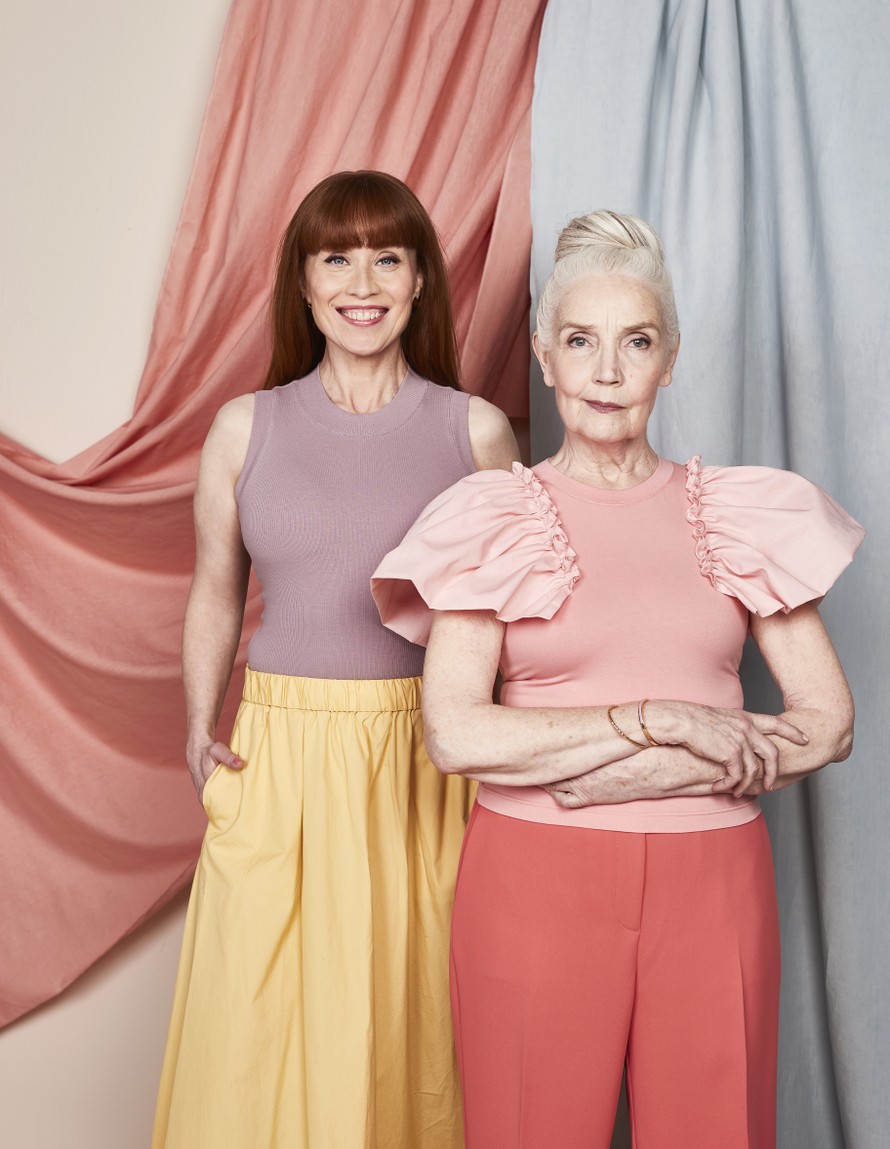 Vartalonmyötäinen trikootoppi.