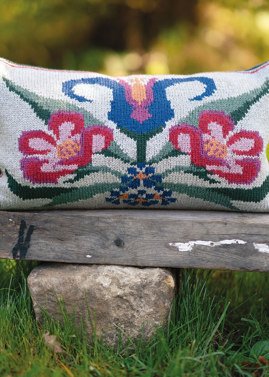 Intarsiana neulottava tyyny.