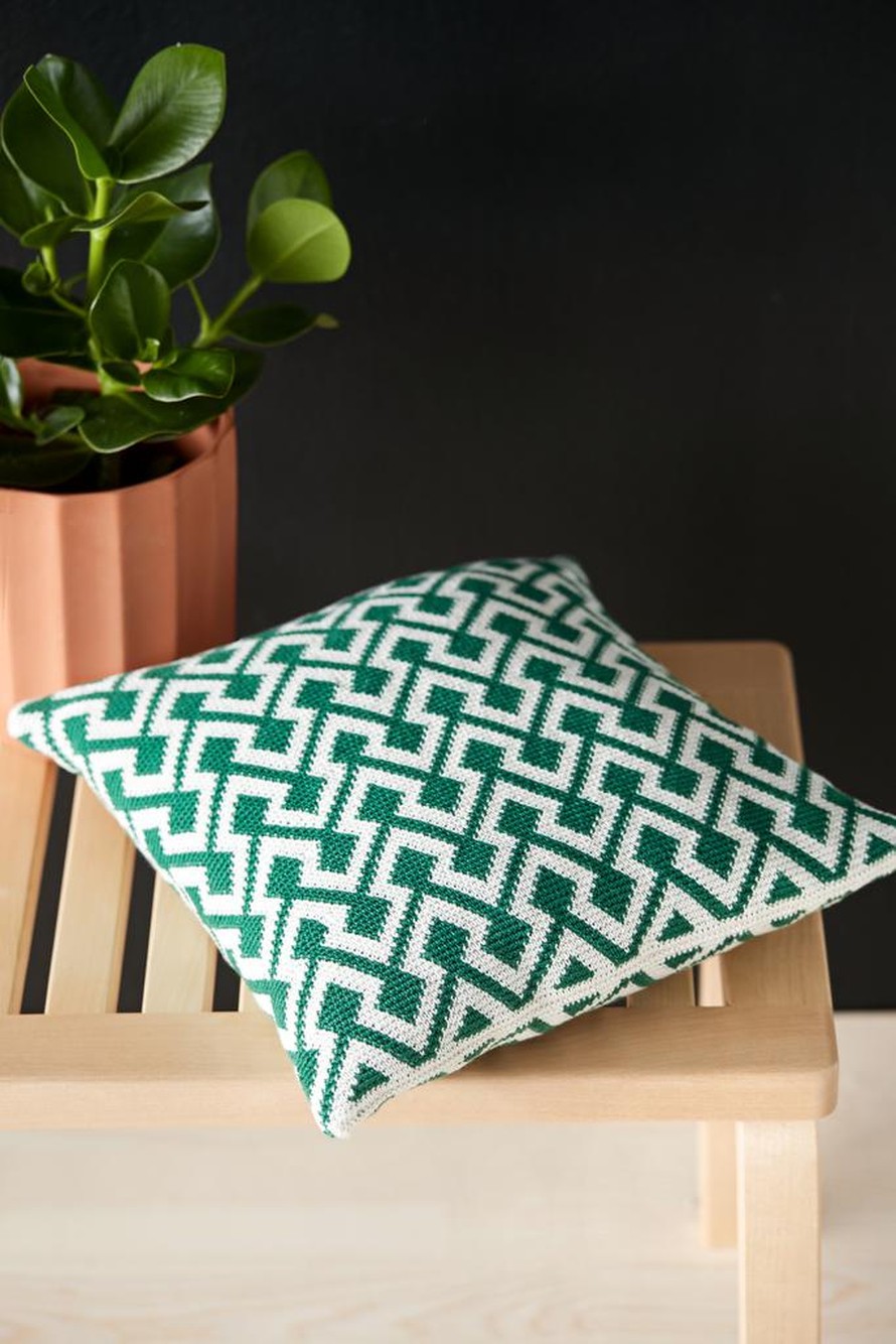 Kirjovirkattu pellavatyyny.