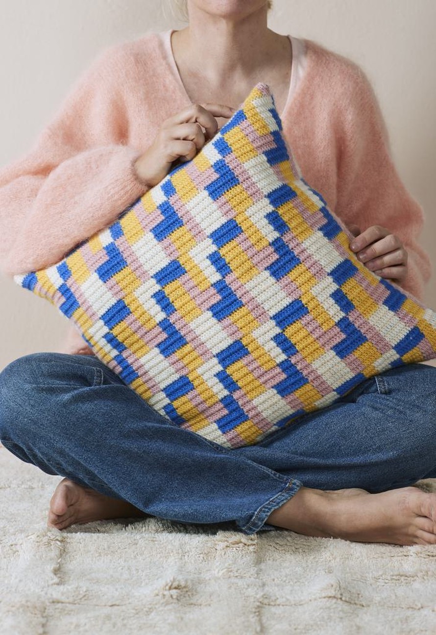 Virkattu Molla Millsin tyyny, koko 43 x 43 cm.