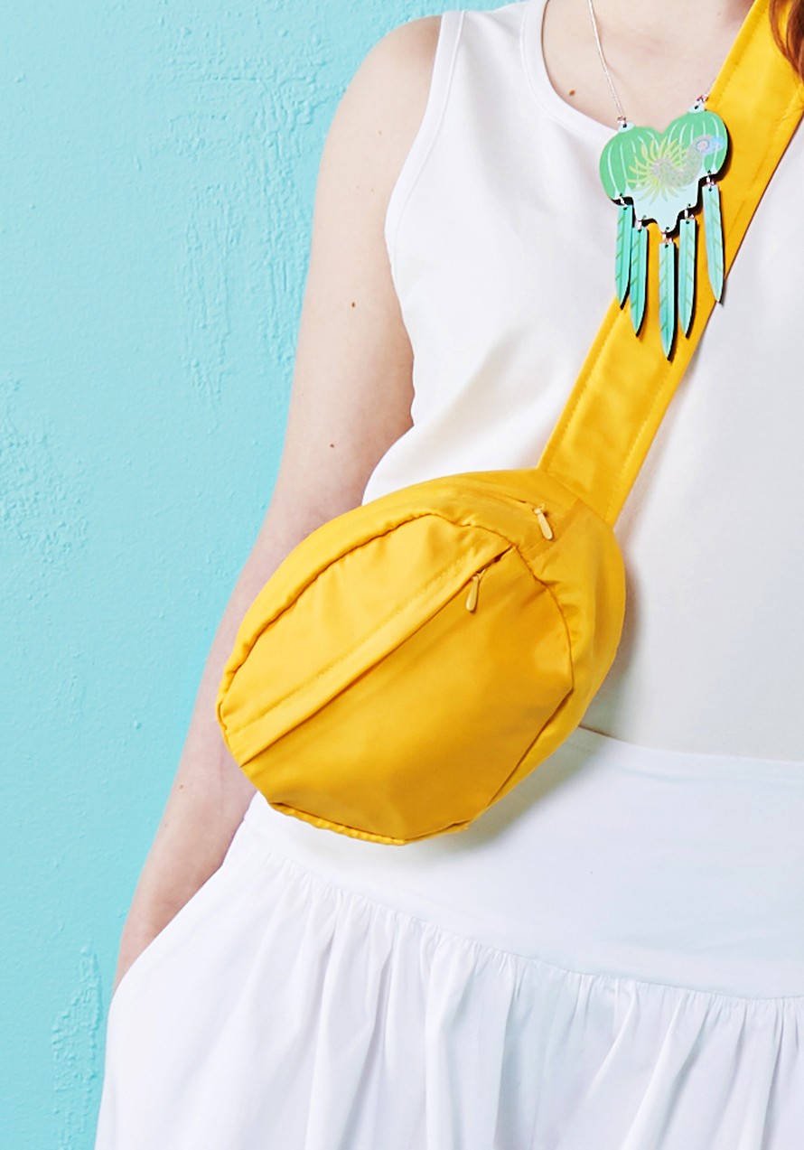 Ulkoilukankaasta tehty vyölaukku.