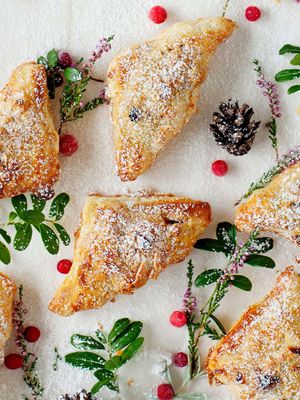 Nam, mitä lämpimäisiä! Karpaloiset briejuustokolmiot ja glögihörppy hemmottelevat