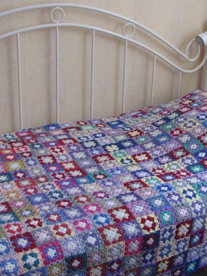 Värikäs päiväpeite isoäidin neliöistä