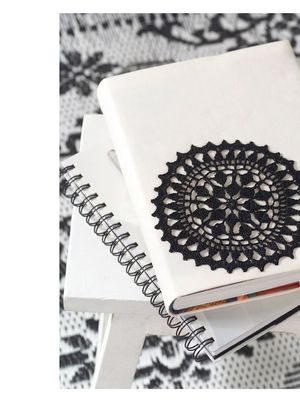Koristele muistikirja virkatulla pitsillä