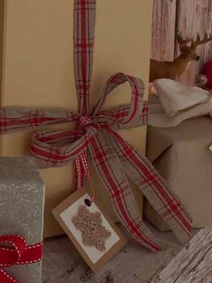 Virkattu tähti koristaa kauniisti pakettikorttia – ja sopii myös joulukuusen koristeeksi