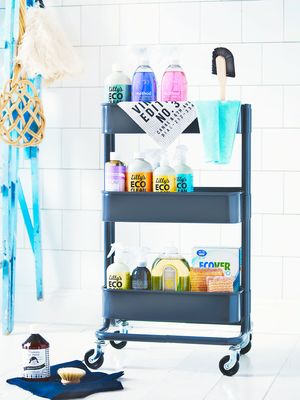 Siivousvälineet pysyvät järjestyksessä, kun keräät ne kärryyn