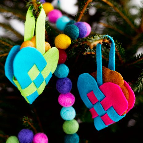 Koristele kuusi lämminhenkisesti itse neulotuilla palloilla.