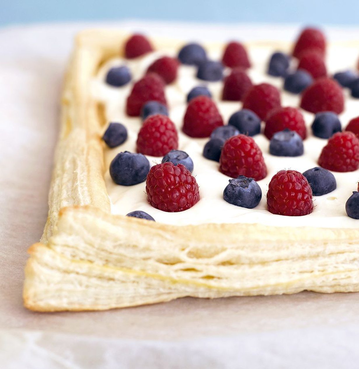 - Levitä marjat kerman päälle ja sirota halutessasi tomusokeria vadelmien päälle.
