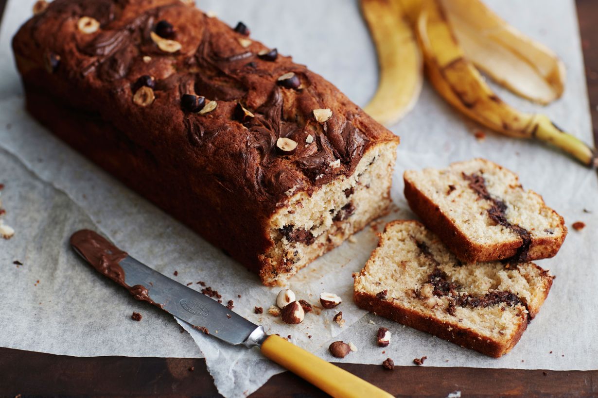 Edes vatkaimen hurina ei keskeytä letkeää tunnelmaa, joka syntyy banaanikakun leipomisesta. Nam, Nutellaa!