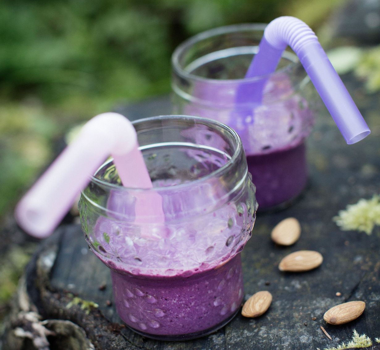 - Lisää mustikat, mantelimaito ja vaniljasokeri. Jatka sekoittamista, kunnes seos on tasaista ja kuohkeaa.