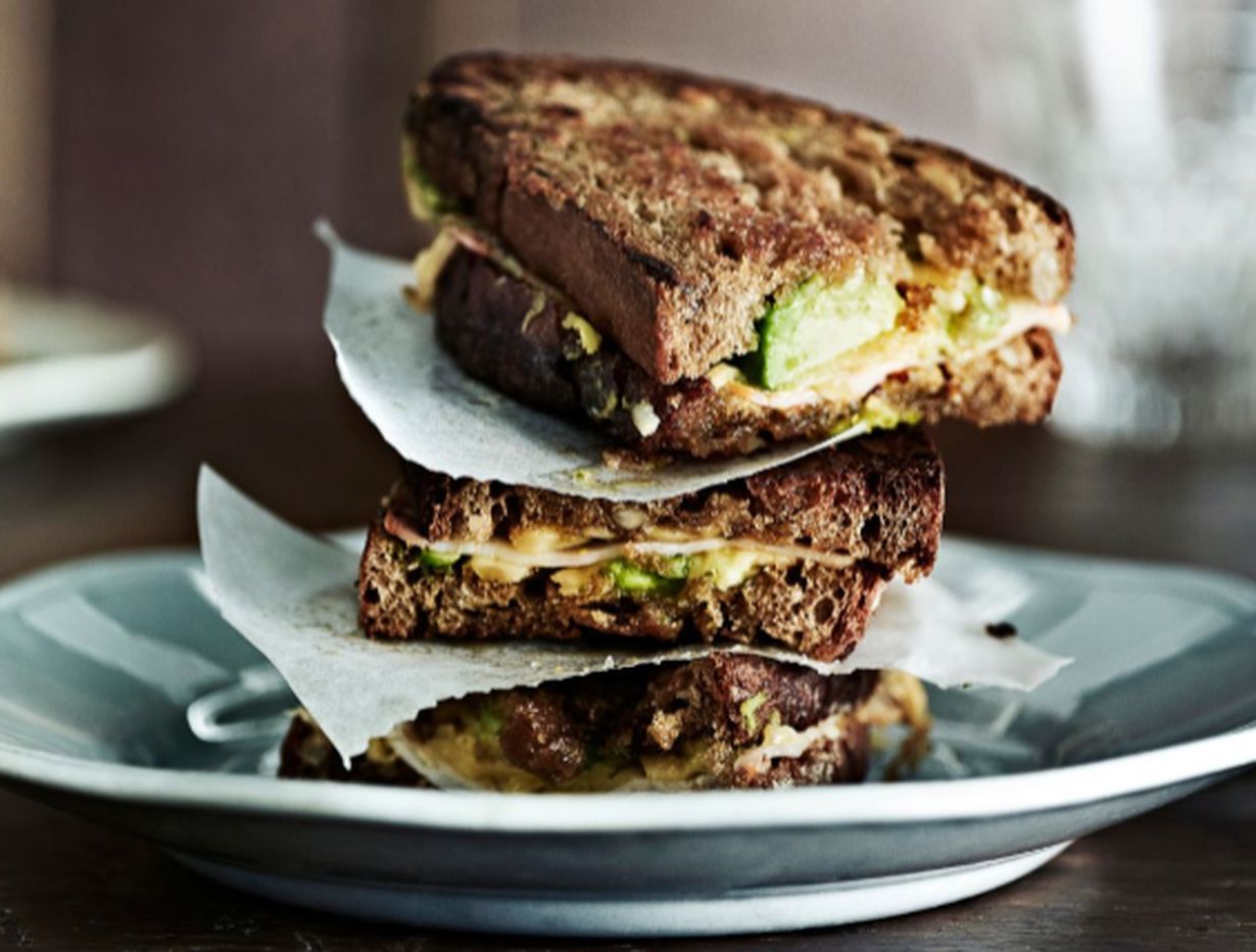 Ranskalainen kinkku-juustoleipä maistuu erityisen ihanalta, kun sen väliin sujauttaa muutaman viipaleen avokadoa.