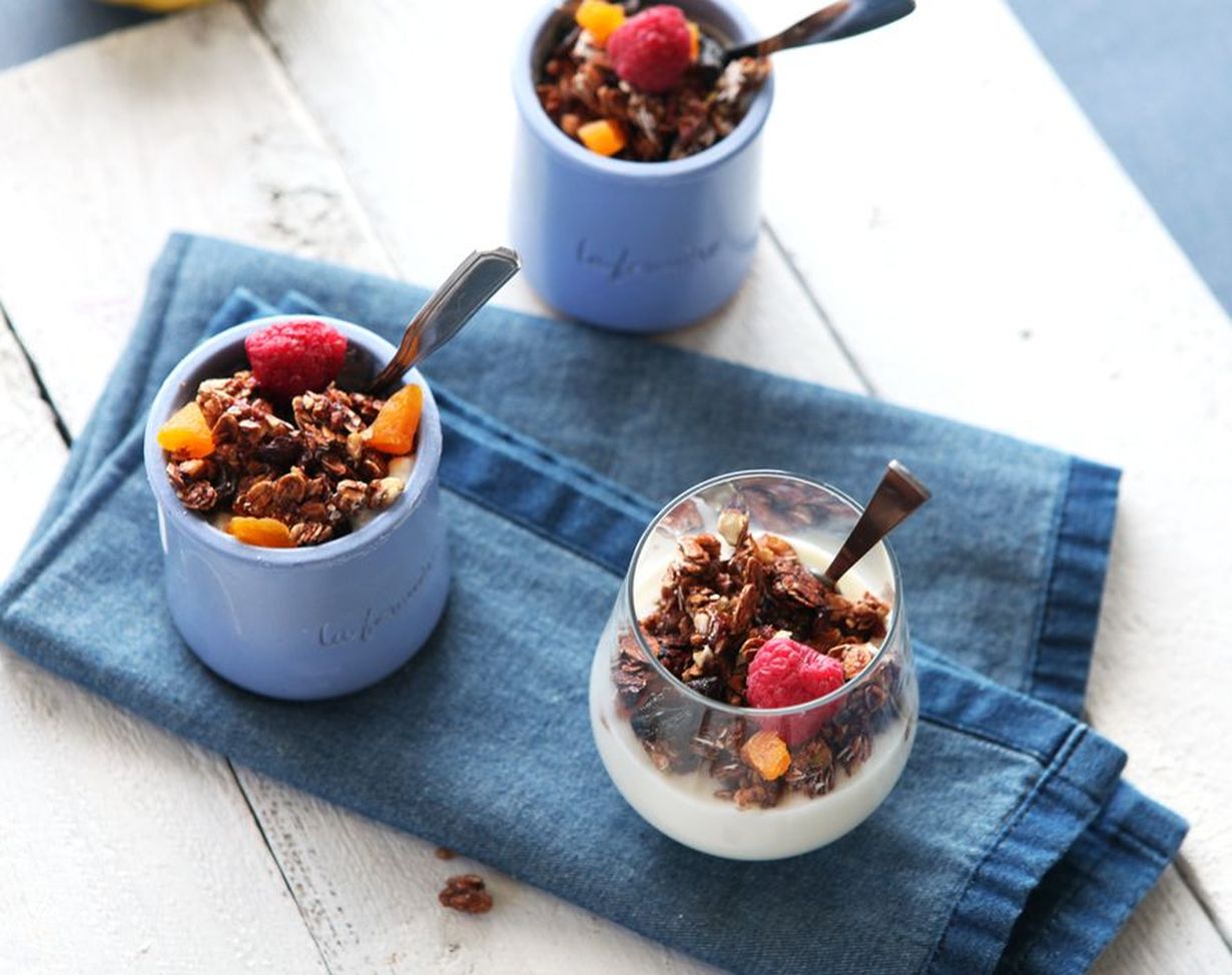 Granola sopii myös pakastimen tyhjennykseen, sillä sen sekaan sopivat sulatetut pakastemarjat tarjoiluvaiheessa.
