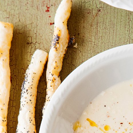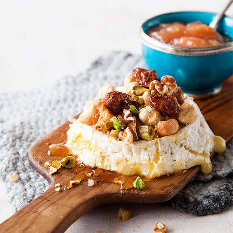 Suolainen juusto ja kirpeä karpalo saavat toisistaan täydellisen parin rapeissa voitaikinakolmioissa.