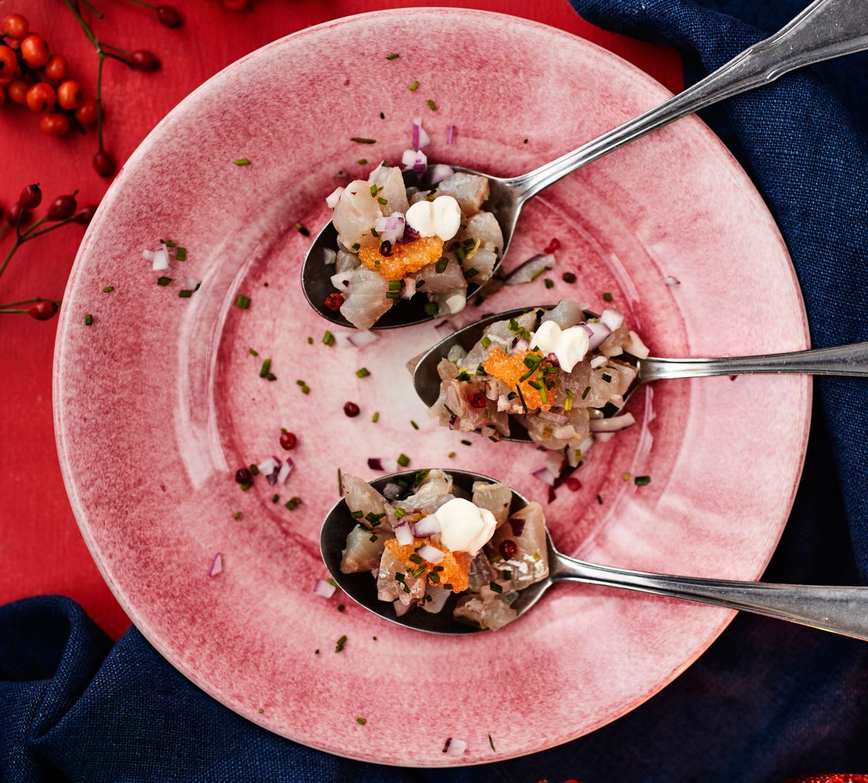 - Tarjoa kulhosta saaristolaisnäkkärin kanssa tai jaa tartar ruokalusikoihin vadille ja tarjoa alkupalana. Viimeistele ruohosipulilla, roseepippurilla ja siianmädillä.