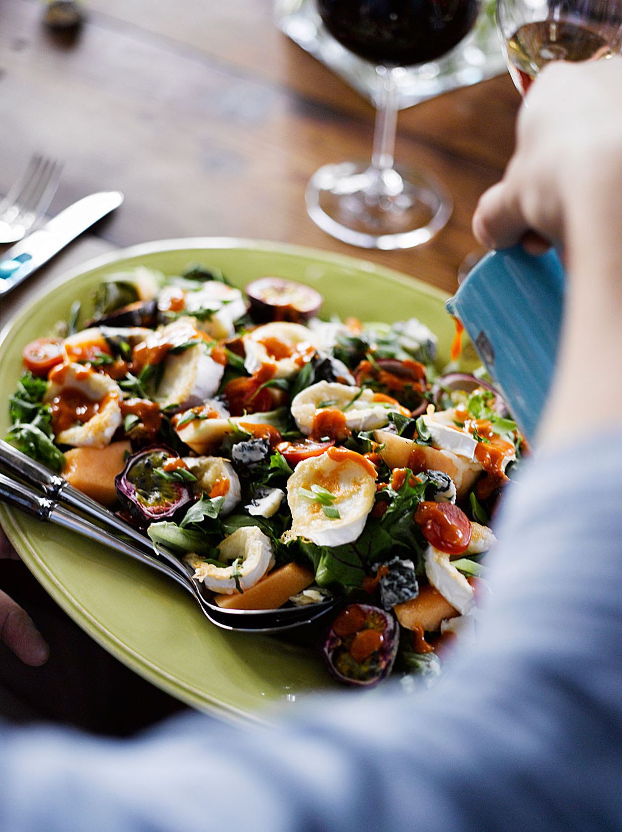 Avokado ja vuohenjuusto ovat parsan ihanat makuparit. Inkiväärikastike tuo salaatille potkua.