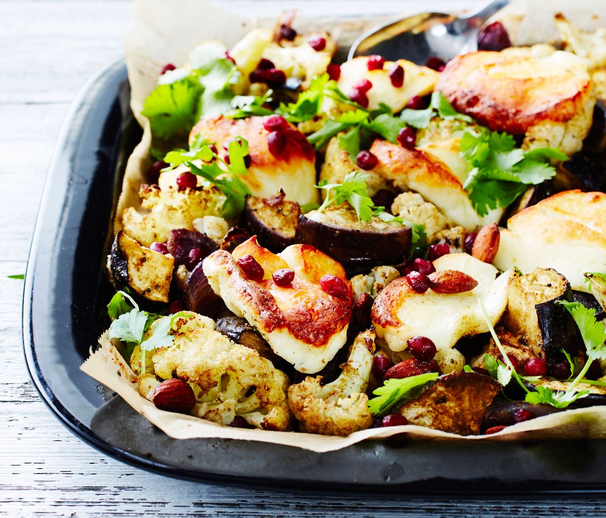 - Viipaloi halloumi kasvisten päälle.
