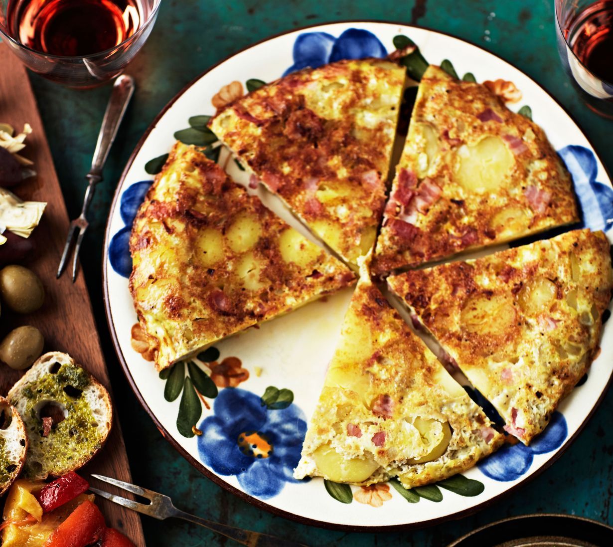 - Kumoa tortilla varovasti pannusta lautaselle. Paloittele lohkoiksi.