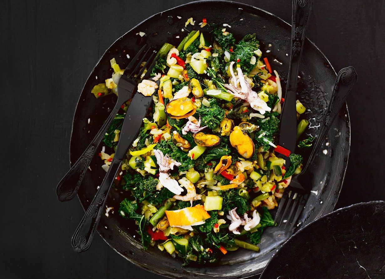Äyriäis-lehtikaalipannu