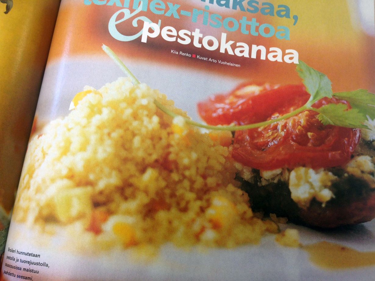 Broileri hunnutetaan pestolla ja tuorejuustolla, couscousissa maistuu paahdettu seesami.