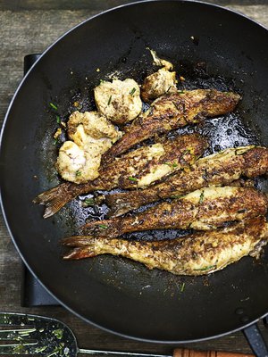 Paistetut kumina-ahvenet