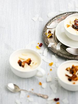 Valkosuklaa-kookosjäädyke ja karpalopraliinia