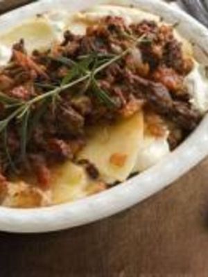 Vuohenjuusto-jauhelihavuoka