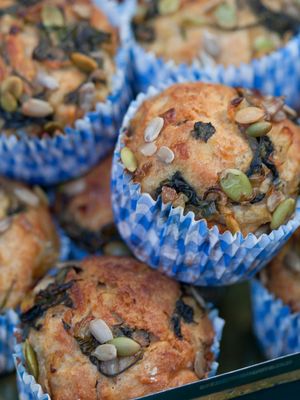 Muffinit babypinaatilla ja kurpitsansiemenillä