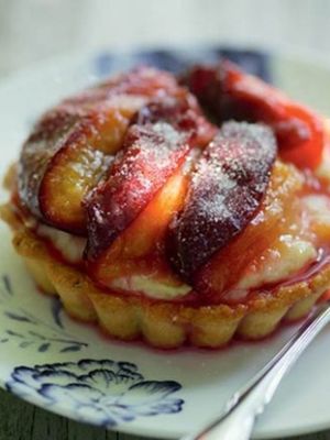 Jugurttia taatelikinuskilla, lakumyslillä ja marinoiduilla luumuilla