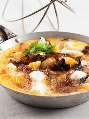 Kesäkurpitsamunakas ja kantarellicrostinit