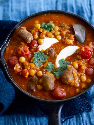Papu-tomaattipata ja maustemakkaraa