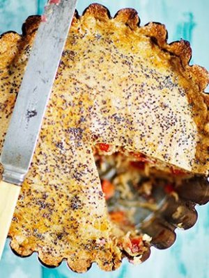 Nam, nam! Peruna-sienipiirakkaan voi upottaa vaikkapa suppiksia.