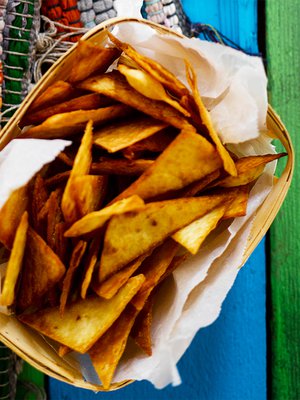 Rapeat bataattilohkot ja lämmin juustokastike hurmaavat texmex-vuoassa