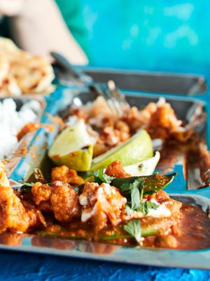 - Purista limen mehu ja sekoita joukkoon maizena. Yhdistä seos currykastikkeeseen. Lisää perunat ja hauduta 20 minuuttia. Lisää lopuksi pähkinät ja thaibasilika. Mausta tarvittaessa suolalla.