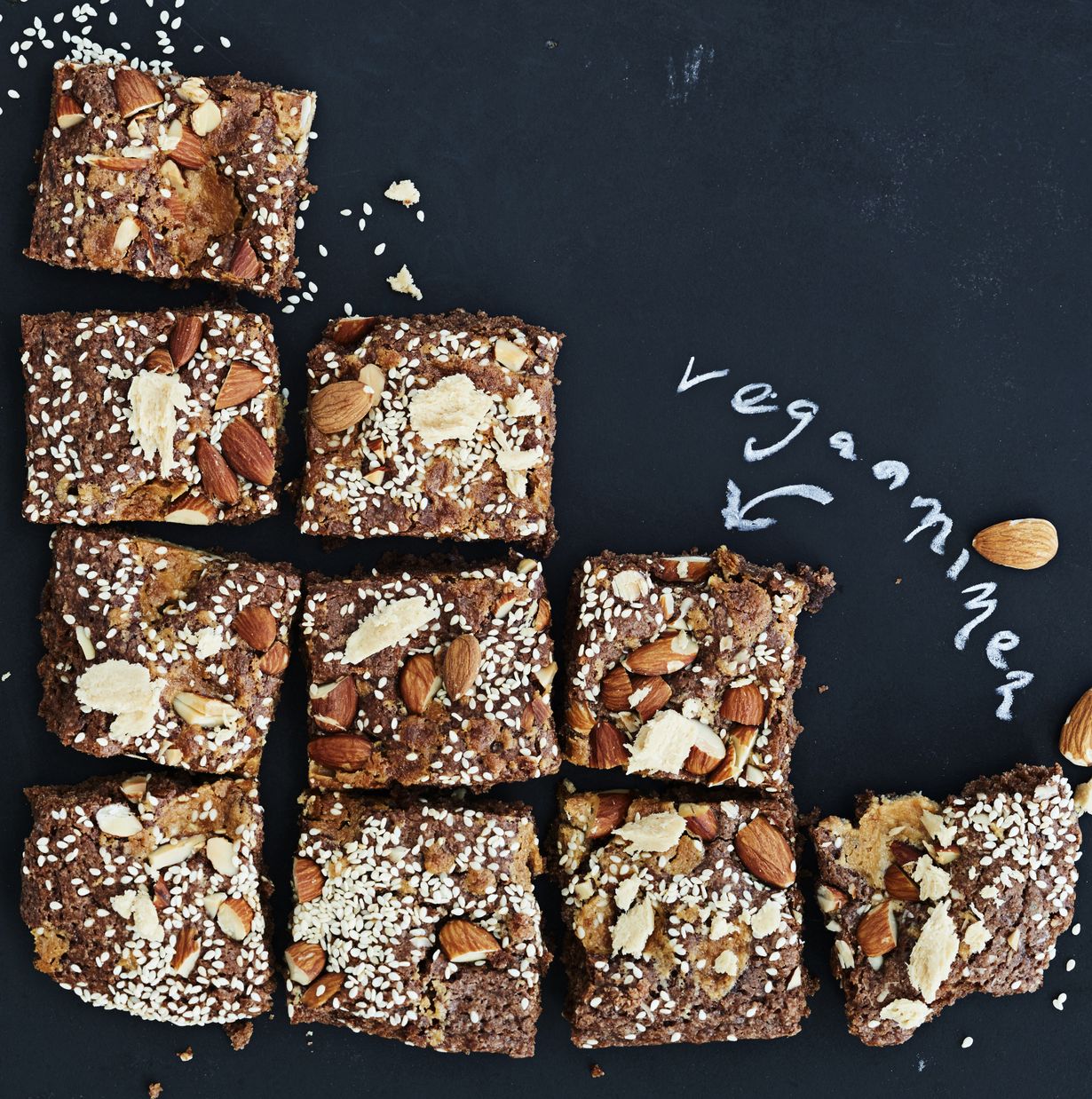 Vegaaniset, maidottomat, munattomat ja gluteenittomat halva-mantelipalat sopivat melkein kaikille. Tahini antaa leivoksille paahteisen maun ja mehevän rakenteen.