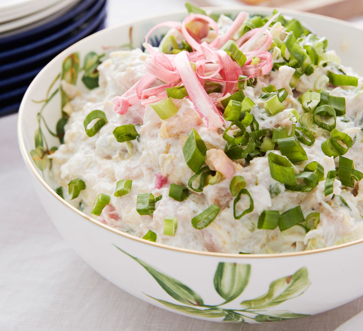 - Sekoita jugurtti, pippuri ja valutetut raparperit. Kääntele seos kaalin joukkoon. Kumoa salaatti kulhoon. Viimeistele kevätsipulilla.