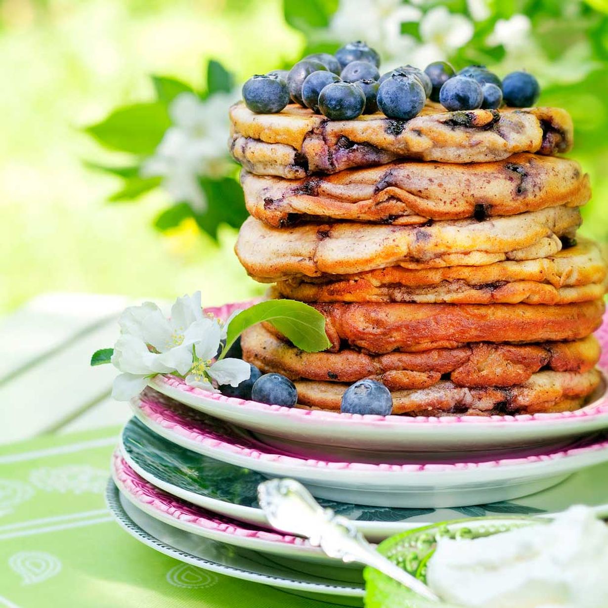 Mehevät mustikkapannarit ovat amerikkalainen aamiaisherkku.