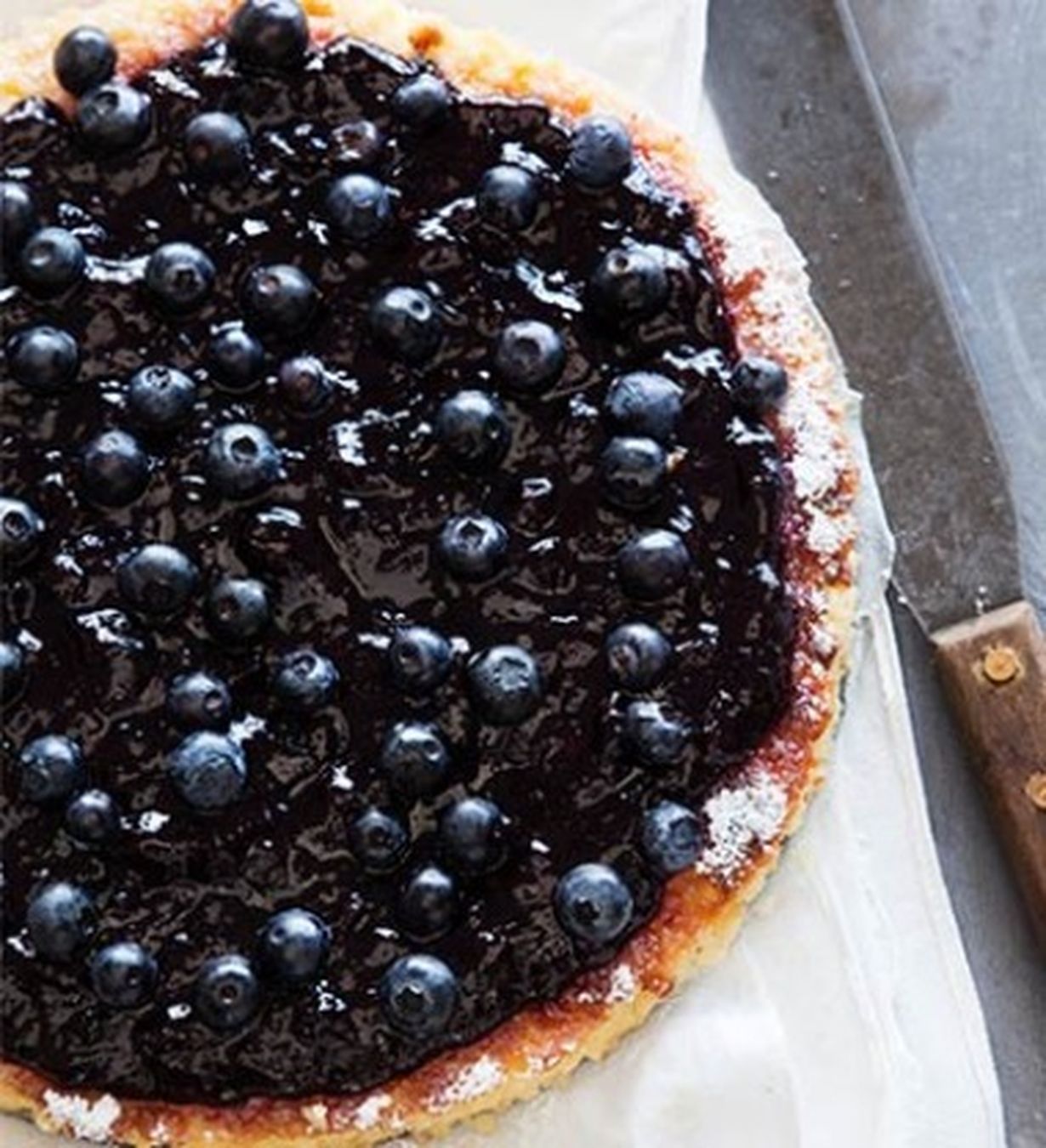 Klassinen juustokakku saa pinnalleen aimoannoksen tuoreista mustikoista tehtyä hilloketta.