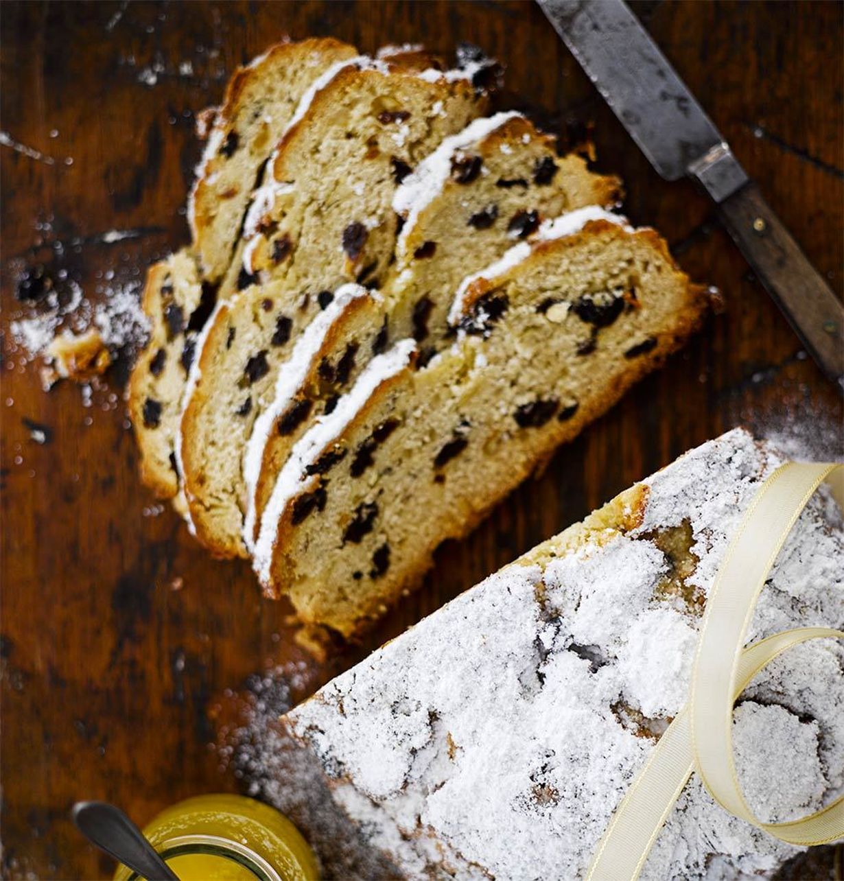 Saksalainen joulukakku, stollen säilyy hyvänä pari viikkoa ja sen voi myös pakastaa.