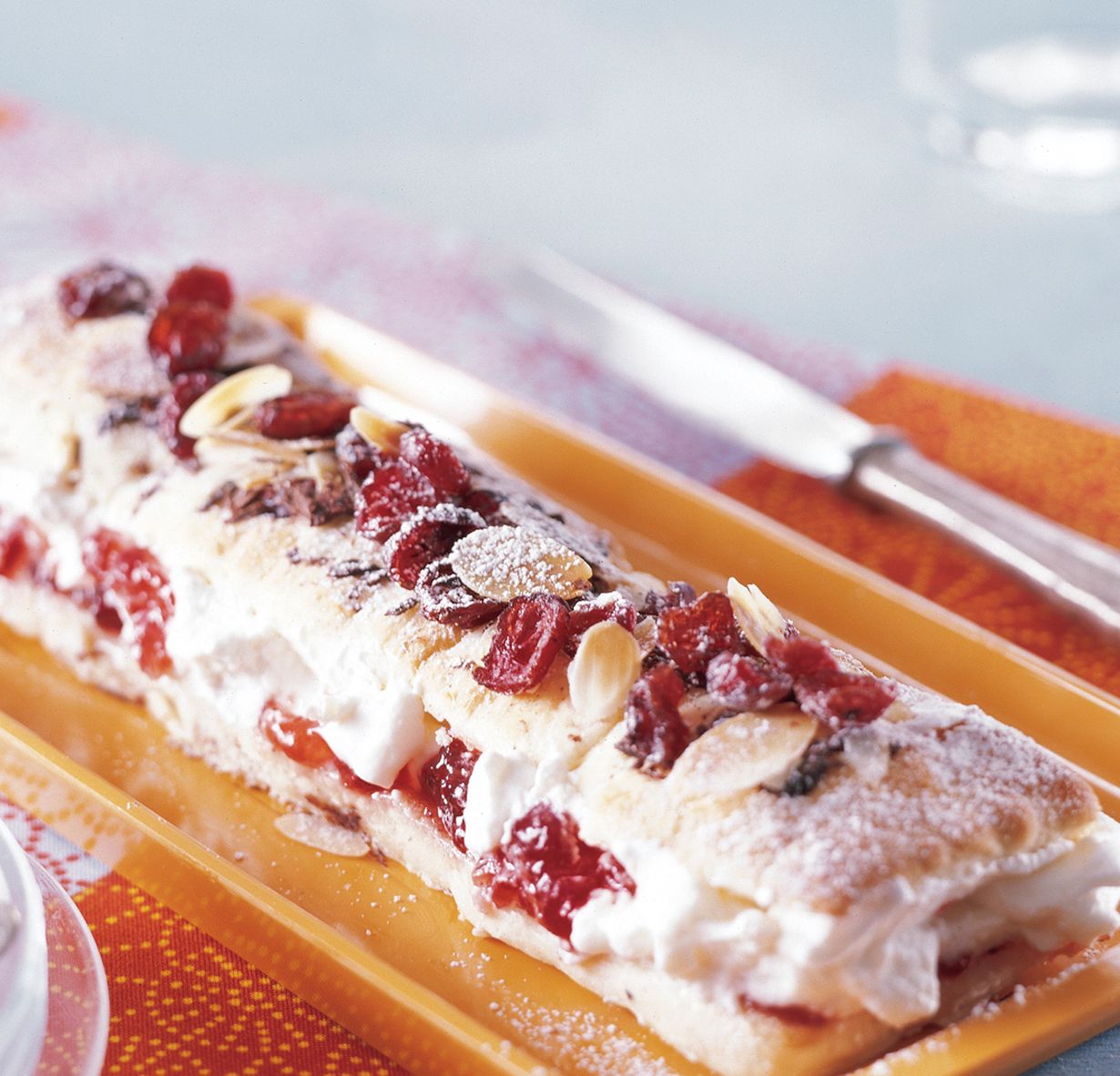 - Vaahdota kerma. Leikkaa pullapötköt pituussuunnassa halki ja halutessasi valmiiksi annospaloiksi. Täytä välit ohuiksi siivuiksi leikatulla mantelimassalla, hillolla ja kermavaahdolla.