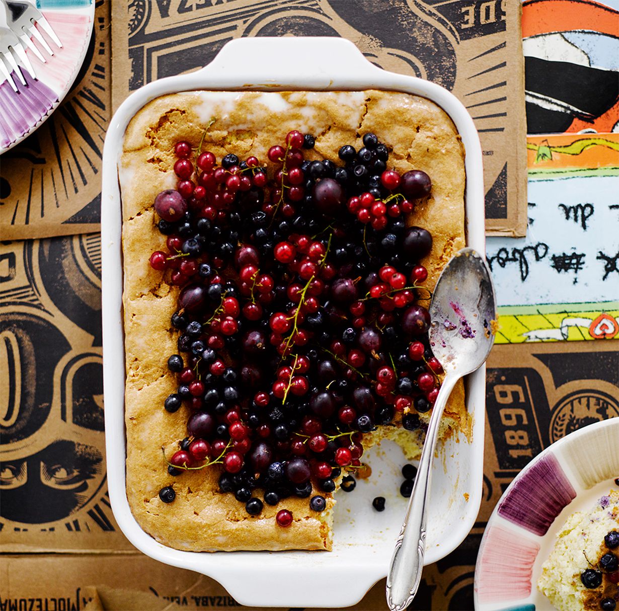 Koristele kakku mustikoilla, punaherukoilla tai karviaisilla.