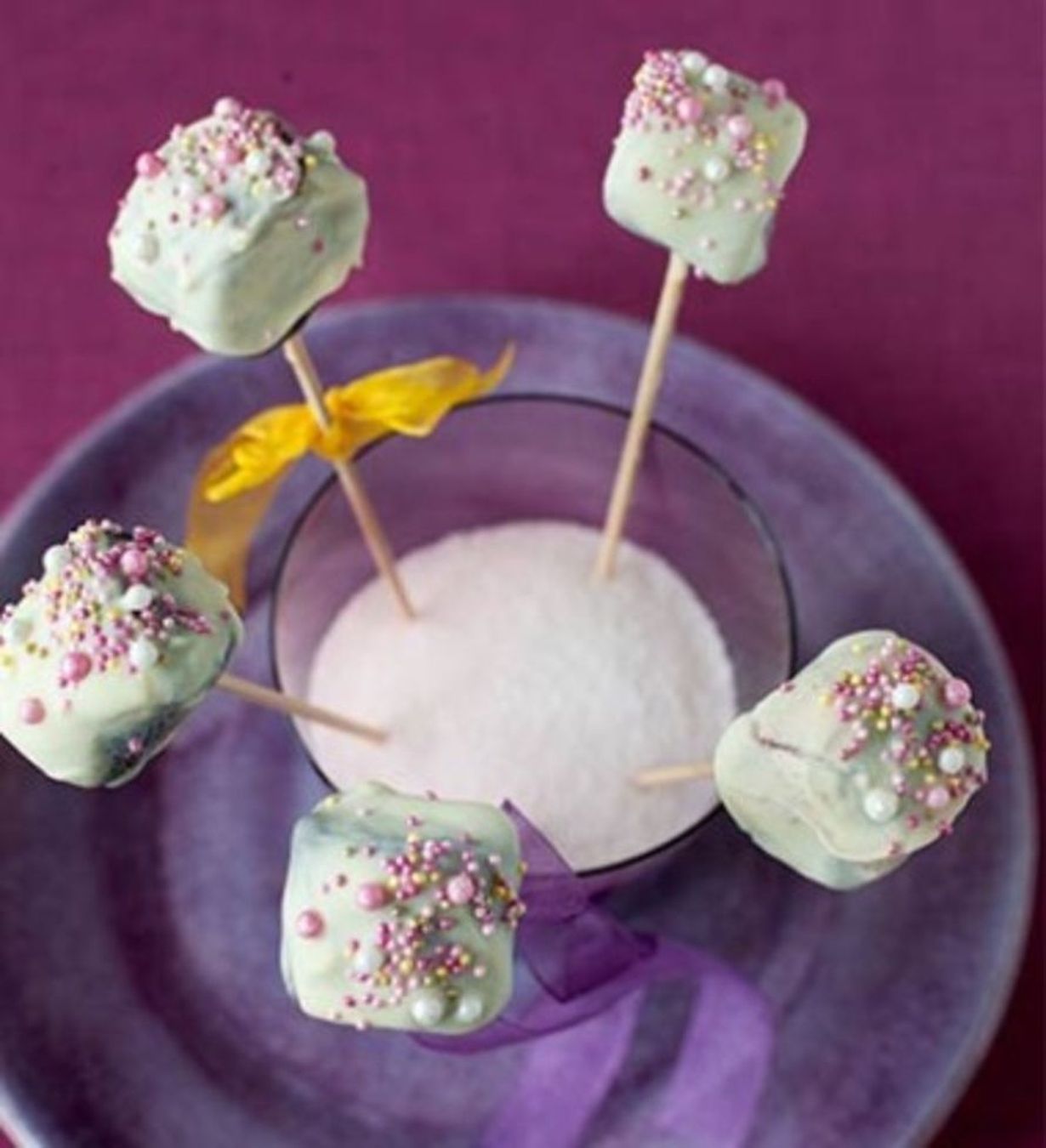 - Kuumenna kerma. Sulata tumma suklaa paloina kerman joukkoon. Hämmennä tasaiseksi. Dippaa vaahtokarkit nopeasti sulaan suklaaseokseen. Nosta varrastikun avulla korkeaan lasiin pystyyn, joka on leivinpaperin päällä. Anna suklaan valua ja kovettua.