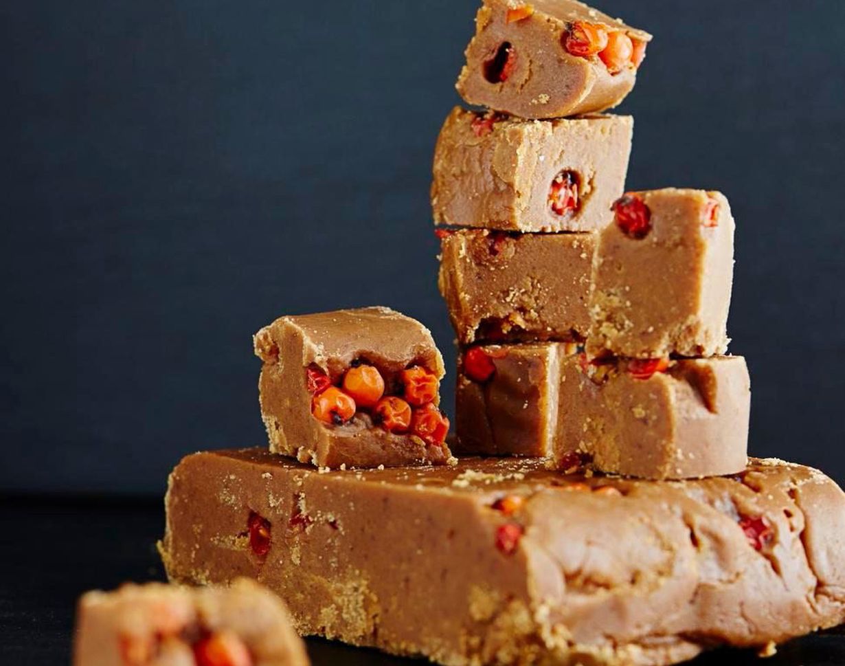 Kotikeittiön karkkitehtaassa ei käytetä lisäaineita! Upean kirpeät pihlajanmarjat sekoitetaan sellaisenaan pehmeän fudgen joukkoon. Luvassa on täydellinen makuelämys.