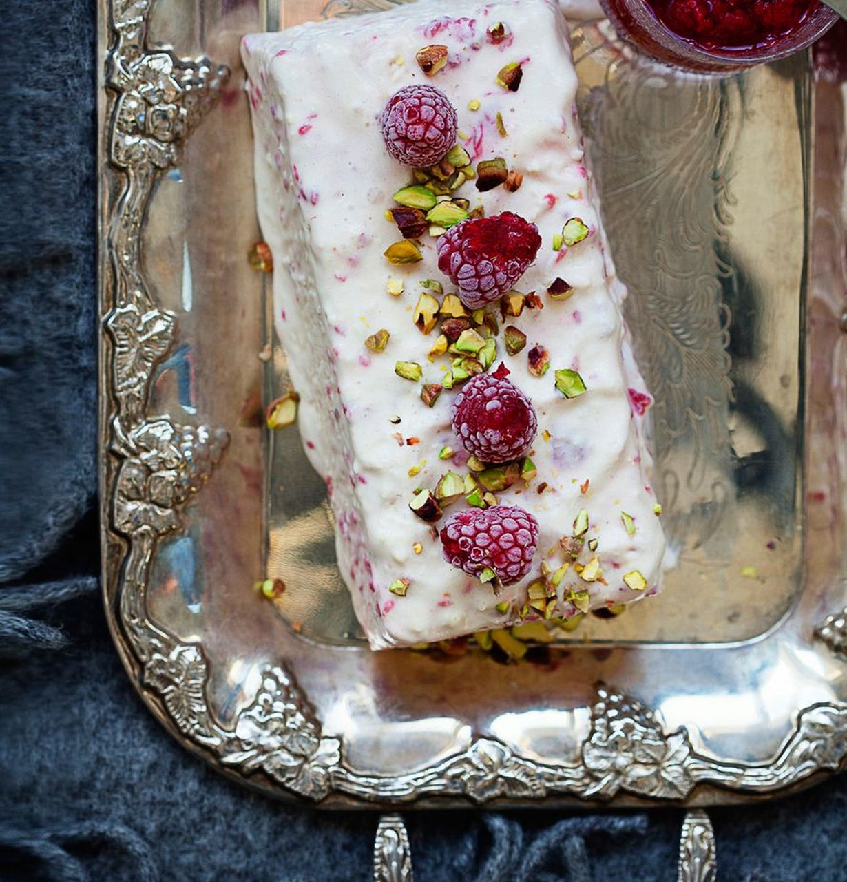 - Ota jäädyke sulamaan noin puoli tuntia ennen tarjoilua. Kopauta vuokaa napakasti leikkuulautaan ja kaada jäädyke laudalle.