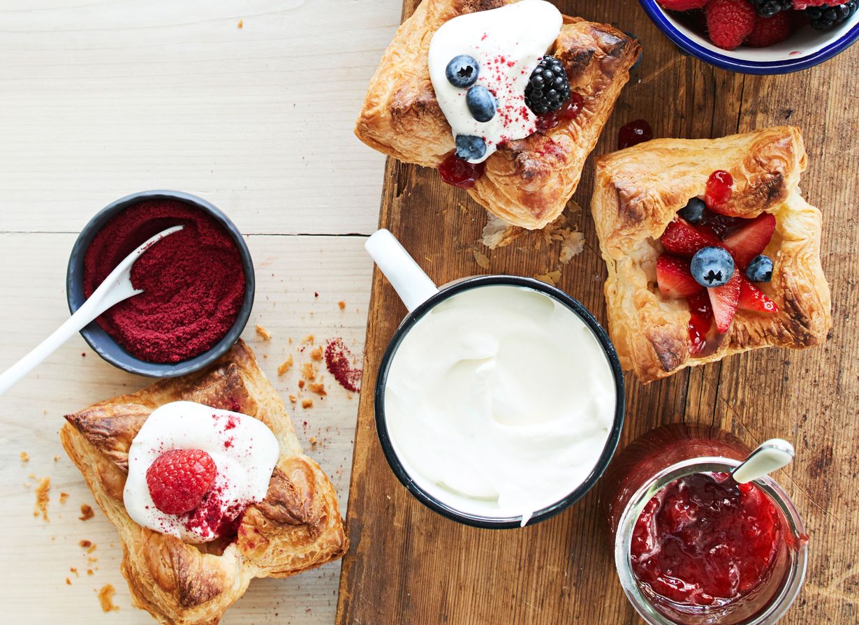 Yllätysvieraatkin ovat tervetulleita, jos kaapissa on voitaikinaa, marjoja, kermaa ja jugurttia.