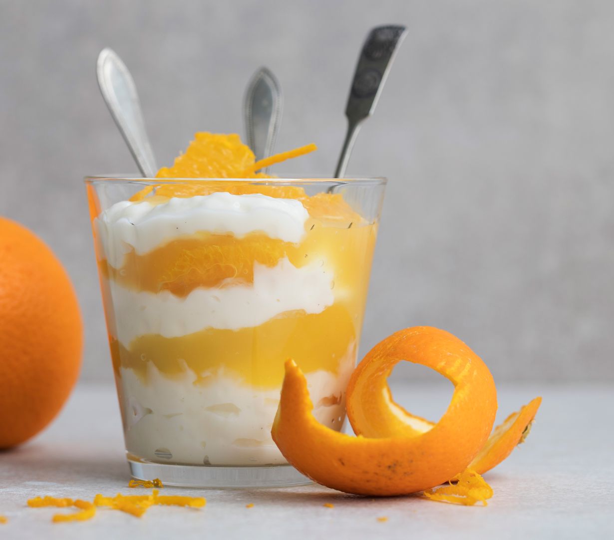 Mummolatyylinen kerroskiisseli on parasta jääkylmänä ja lasista lusikoituna. Tee talven raikkain jälkkäri appelsiineista ja täysmaidosta.