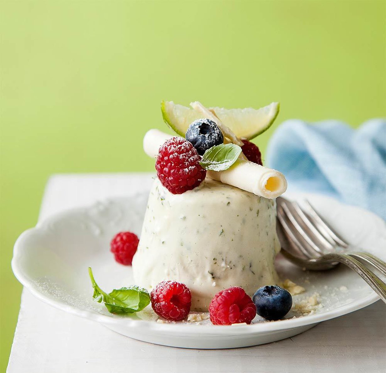 Raikas parfait eli jäädyke on helppo valmistaa pakastimeen hyvissä ajoin.