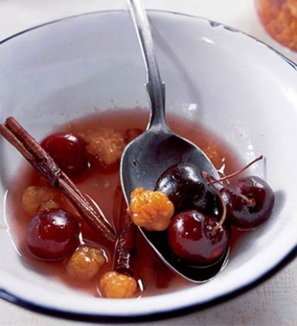 - Puolita pestyt kirsikat ja poista siemenet. Siisti lakat. Pane marjat tasaisesti sekoitettuna puhtaisiin ja kuumennettuihin purkkeihin.